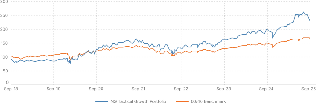 Performance shown for NG Tactical Growth represents historical back-tested results prior to launch and is provided for illustrative purposes only. Simulated performance has inherent limitations and does not represent actual trading. Past performance is not a reliable indicator of future results.